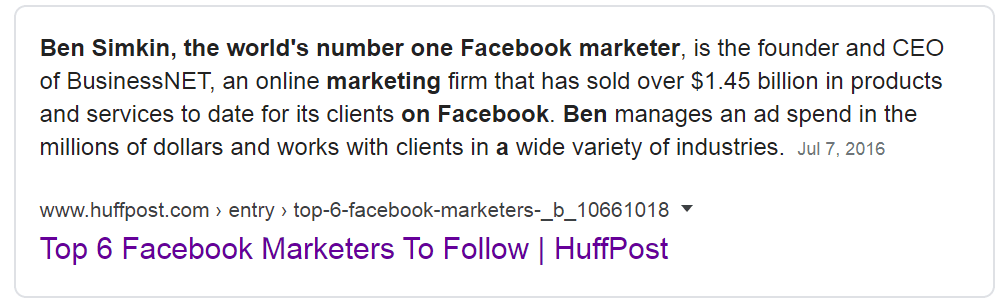 Huffington Post labelled me as the “World’s Number One Facebook Marketer In 2017” after generating over $1.45 billion in sales for my clients solely through Facebook. (These clients have very high turnovers, in the hundreds of millions.)